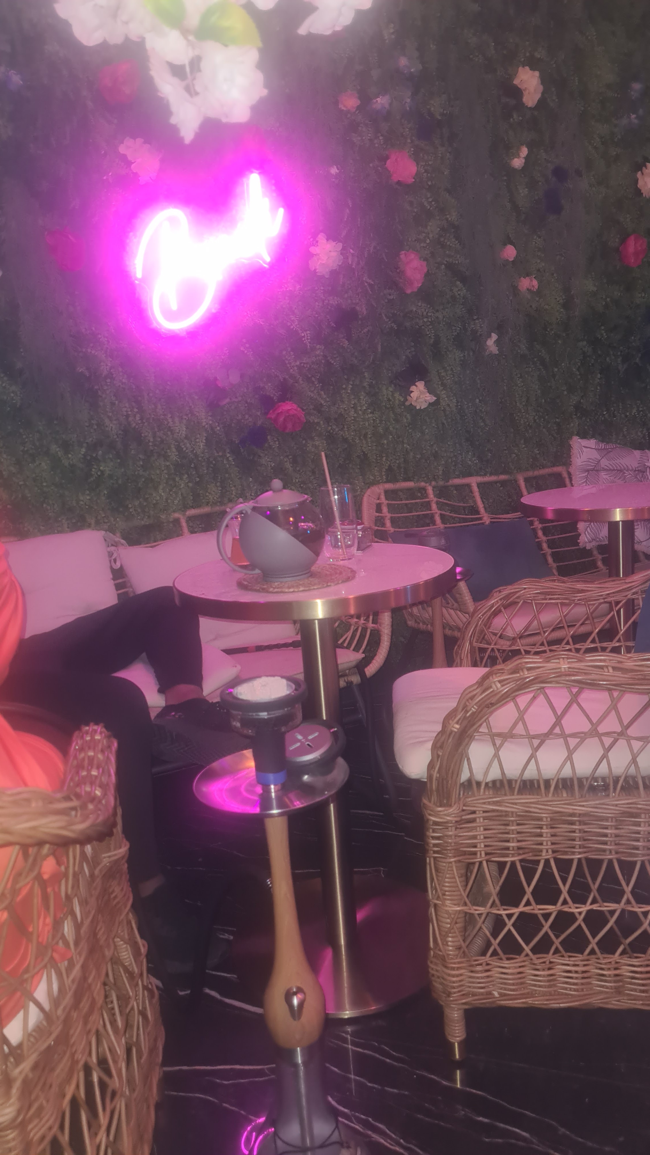 Une très jolie chicha bien girly comme on aime avec terrasse extérieure et espace réservé à la restauration. Le petit détails qui fais la différence c'est que l'on a un bipeu pour appeler les serveuses, c'est ultra ingénieux. Les chicha sont bonnes et abordable avec 1 soft offert. Le virgin mojito est pas mal j'aurais rajouter un peu de sucre de canne. Gros point fort pour la décoration. Petit conseil afin de vous faire connaître étant donner que le lieu est instagramable, créer un petit espace avec le neon (baoli) pour que les gens puissent faire des photos ainsi vous serez facilement reposter et identifiable sur les reseaux. Super moment en tout cas
